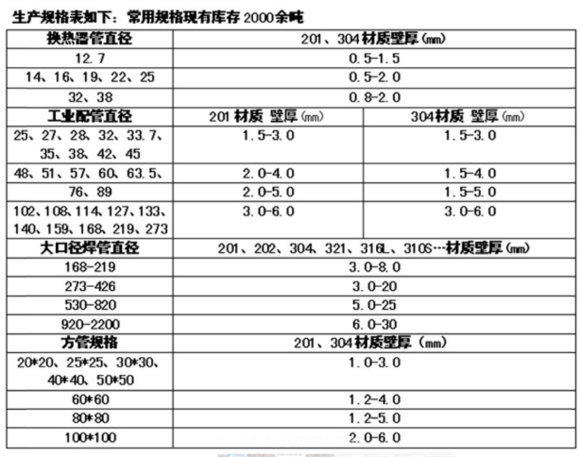 S31008不锈钢管,不锈钢管规格表,不锈钢管库存表