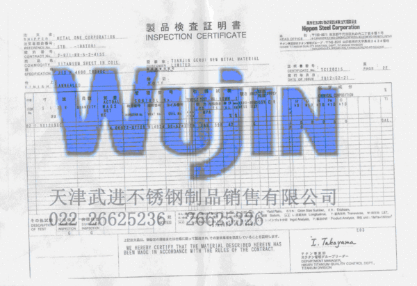 进口新日铁不锈钢管质保书